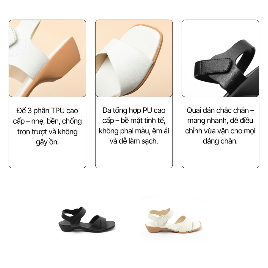 • Đế 3 phân vừa vặn – tôn dáng mà vẫn dễ chịu khi di chuyển cả ngày.